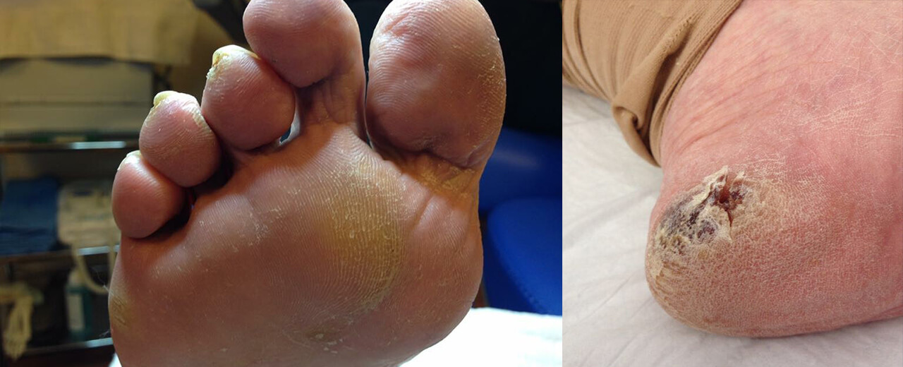 Een te dikke eeltlaag kan openbarsten met als gevolg een wond in de huid (fissuur).